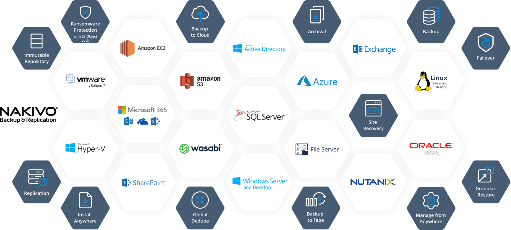 Voor het veilig stellen van uw virtuele infrastructuur, of dit nu gebaseerd is op VMware, Hyper-V, Nutanix of AWS EC2, kunt u gebruik maken van NAKIVO Backup & Replication.